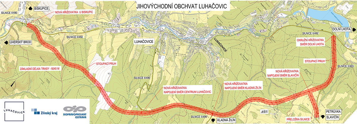 „Díky studii, kterou se podařilo realizovat ve spolupráci se Zlínským krajem a za jeho finanční podpory už známe nejvhodnější trasu a mnoho detailů. Zatímco průjezd městem je dlouhý 7,7km, po trase obchvatu ujedou řidiči pouze o 1,6 km více. Protože ale pojedou mimo obec vyšší rychlostí, dokonce časově ušetří cca 20% doby oproti průjezdu městem,“ poznamenal Ležák. Při průjezdu městem řidiči navíc musí počítat také se zdržením na kruhových objezdech a u častých přechodů pro chodce v centru lázeňského města. Aby obchvat dopravu účelně odklonil, bude páteřní komunikace napojena na jedné straně už od křižovatky u Biskupic. „Pouze takové řešení bude fungovat. Ze studie vyplývá, že bližší napojení trasy k městu na silnici II/492 řidiče odradí od využívání obchvatu,“ upozornil starosta.