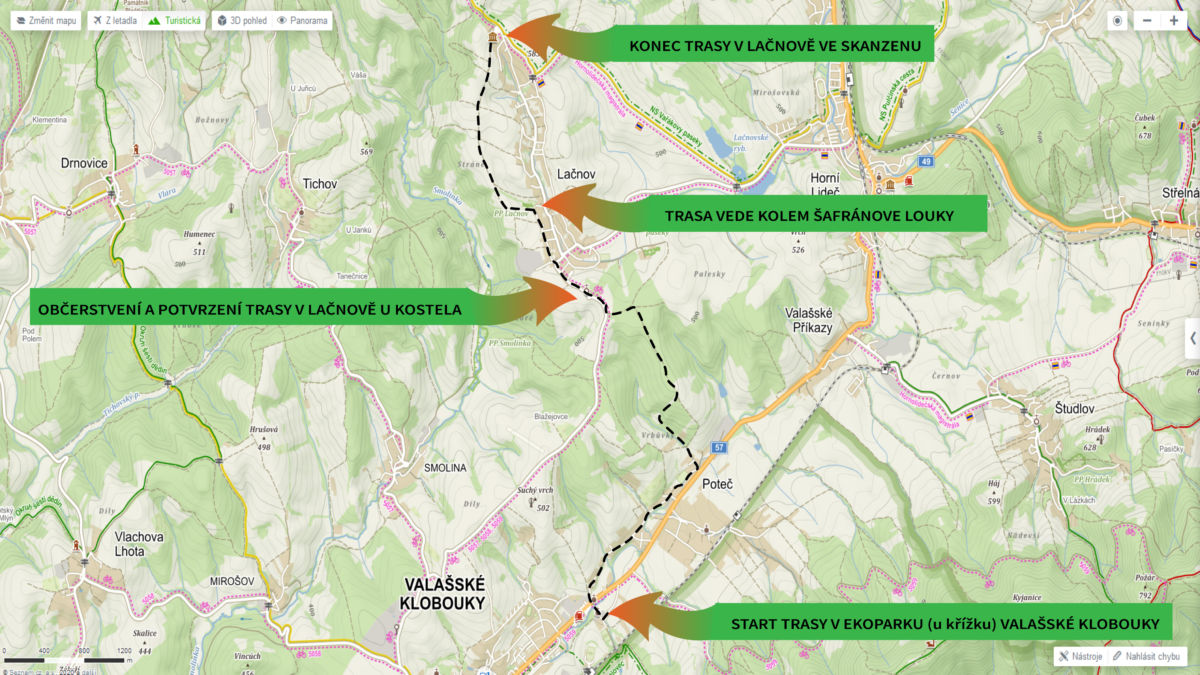 Od klobucké kapličky se vydáte směrem k obytné části obce Poteč a dále až k fotbalovému hřišti, odkud dojdete až k lačnovskému kostelu. Dále bude trasa značena šipkami a povede vedlejší cestou směrem k šafránové louce nad školním hřištěm, odkud se polní cestou dostanete až do cíle. „Trasa bude samozřejmě dostatečně značena, tak snad nikdo nezabloudí. O občerstvení na stanovišti ve Valašských Kloboukách se postará spolek Jižní Valašsko,“ dodal Michal Šerý. [caption id="attachment_82099" align="alignnone" width="1200"]