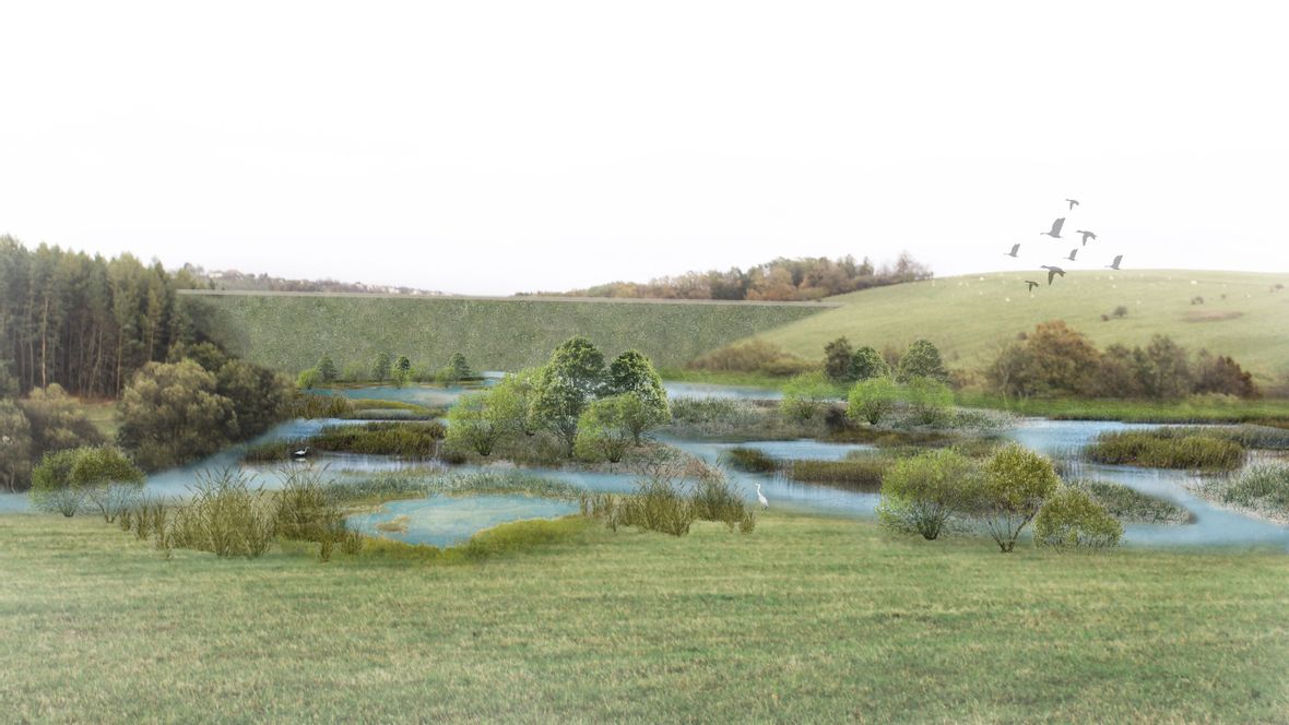 Říční ostrovy pod hrází. Vizualizace: Veronika Chalupová[/caption]