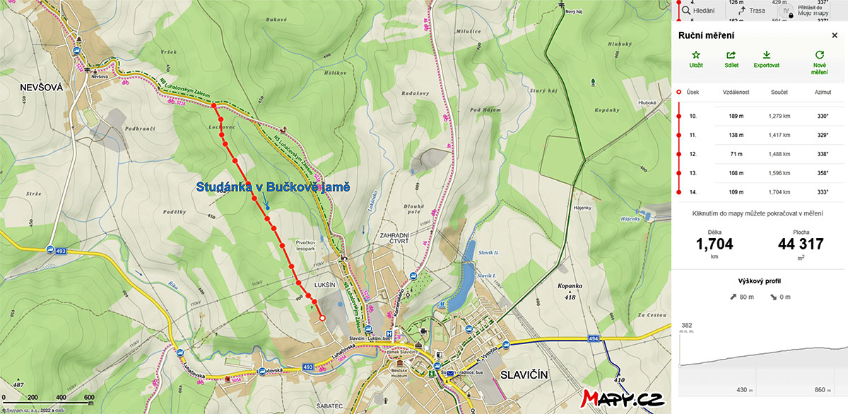 Trasa ke studánce v Bučkově jamě. Pro zvětšení klikni na obrázek[/caption]