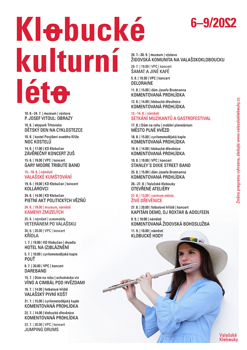 „Klobucké kulturní léto dává lidem příležitost setkat se, pobavit se s rodinou a přáteli a užít si odpočinkový prázdninový čas. Zároveň do našeho města láká turisty a návštěvníky, kteří mohou výlet po památkách či přírodě spojit s hudebním či uměleckým zážitkem. Ráda bych popřála všem našim obyvatelům, přespolním návštěvníkům i turistům, aby jim program ve Valašských Klobukách přinesl pohodové letní vyžití a rádi se k nám vraceli,“ uvedla Eliška Olšáková, starostka města.