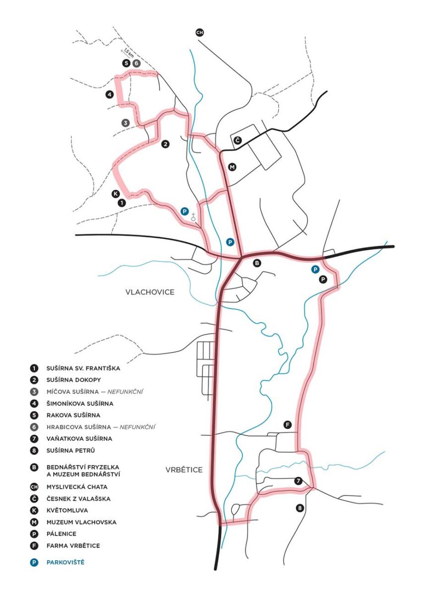 Nezapomeňte navštívit nejkrásnější sušírnu na Vlachovsku, VAŇATKOVU SUŠÍRNU ve Vrběticích, díky majitelům je krásně opravena do původního stavu z doby jejího vzniku, zachovala se i šindelová střecha a starý typ pece. Suší se v ní starobylým způsobem, který uvidíte i u zrekonstruované SUŠÍRNY RAKŮ z vlachovských pasek. Rakova sušírna se nachází v přírodně bohatém prostředí, pamatuje spoustu veselých příběhů. Je kvalitně, citlivě opravena a vybavena původní technologií sušení. Vkročit do ní – znamená vstoupit do doby, kdy vlachovští pasekáři se živili vyhlášeným sušeným ovocem. Počkejte, až ucítíte vůni sušeného ovoce nebo pečených zemňáků z pece…