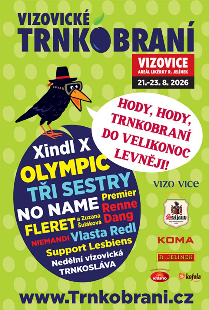 A co letos v areálu likérky Rudolf Jelínek zažijete? Zahrají mj. legendární Olympic, Tři sestry, No Name, Xindl X, Support Lesbiens, Premier, Fleret se Zuzanou Šulákovou, Vlasta Redl nebo Renne Dang, čerstvý Objev roku v anketě Český slavík. Doplní je regionální kapely, místní soubory a bohatý doprovodný program pro dospělé i děti v čele s legendární Velkou cenou v pojídání trnkových knedlíků. Nebudou chybět košty, exkurze za výrobou trnek a další akce zasvěcené trnkám a slivovici.