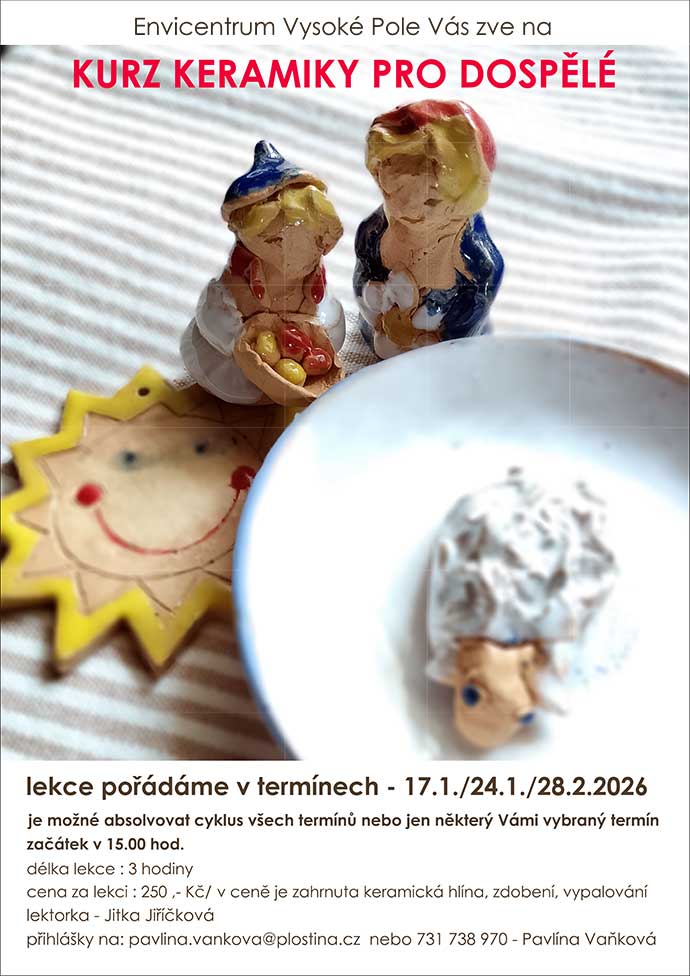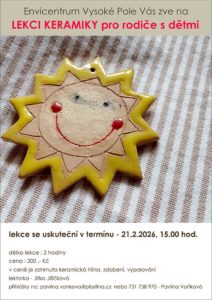 Envicentrum ve Vysokém Poli pro Vás připravilo několik lekcí tvoření z keramické hlíny, které se uskutečnění během ledna a února. Srdečně přivítají ty, kteří mají s hrnčířskou hlínou zkušenost, ale možná ještě více ty, kteří s keramickou hlínou nikdy do kontaktu nepřišli.  Svoji zručnost a kreativitu si budete moci vyzkoušet nebo rozvinout během sobotních odpolední v příjemném prostředí.