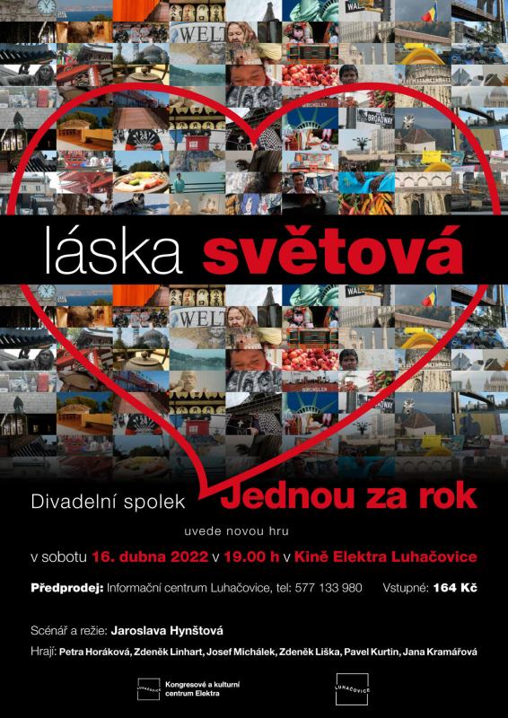 Divadelní spolek Jednou za rok z Luhačovic, uvedl v sobotu večer premiéru divadelní hry Láska světová, kterou napsala a režírovala Jaroslava Hynštová.