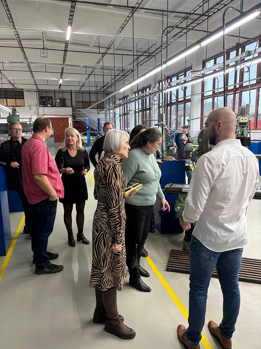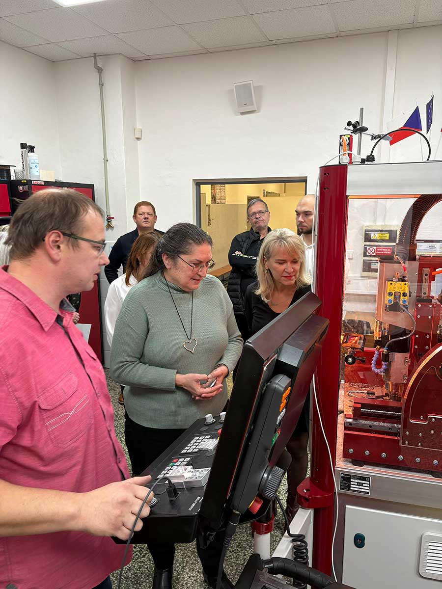 Přítomni byli také paní Monika Hubíková, poslankyně PS Parlamentu ČR za Zlínský kraj, současně také místostarostka města Slavičín, zhotovitel stavby pan Ivan Valenta a stavební dozor pan Zdeněk Juřík. Součástí programu byla mimo jiné krátká návštěva odborných dílen. „Paní radní měla možnost seznámit s jejich provozem, zejména s odbornou pracovnou pro programátory CNC strojů, kde žáci využívají portálovou CNC frézu, na jejíž pořízení nám v rámci modernizace strojírenské výroby zřizovatel přispěl rovněž částkou 2,3 milionu Kč,“ uvedla Mgr. Libuše Pavelková, ředitelka GJP a SOŠ Slavičín.