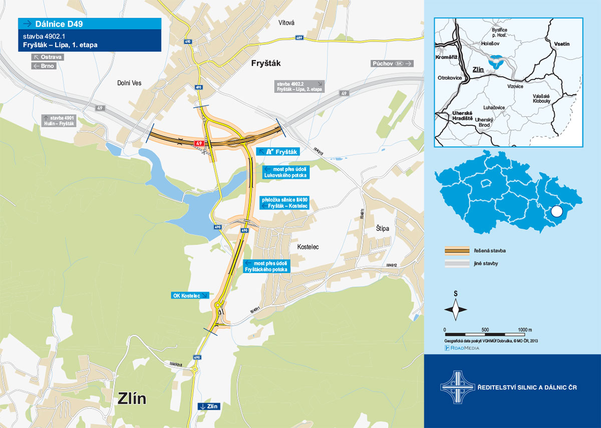 Stěžejní částí přivaděče do Zlína je stavba D4902.1 Fryšták – Lípa, 1. etapa, kterou připravuje Ředitelství silnic a dálnic ČR. Na ni pak navazují další úseky přivaděče, které investorsky řídí spolupracující partneři, tedy Zlínský kraj, město Zlín a Správa železnic. Celková délka přivaděče Zlín (propojení dálnice D49 a silnice I/49) je plánovaná v délce přibližně 6 kilometrů.