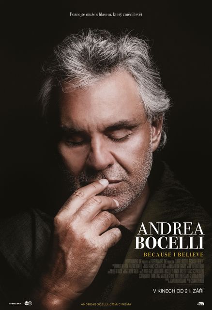 Druhá hudební star, která se prezentuje na plátnech kin, bude dokument Andrea Bocelli: Because I Belive. Film jej odhaluje nejen jako geniálního pěvce a umělce, ale i jako oddaného muže od rodiny s neutuchající vášní pro život. Prostřednictvím rozhovorů, archivních záběrů z vystoupení a neformálních setkání s rodinou a přáteli se dostanete do velmi intimní blízkosti člověka, který se stále dotýká srdcí milionů posluchačů po celém světě. Film uvede kino ve středu 24. září.