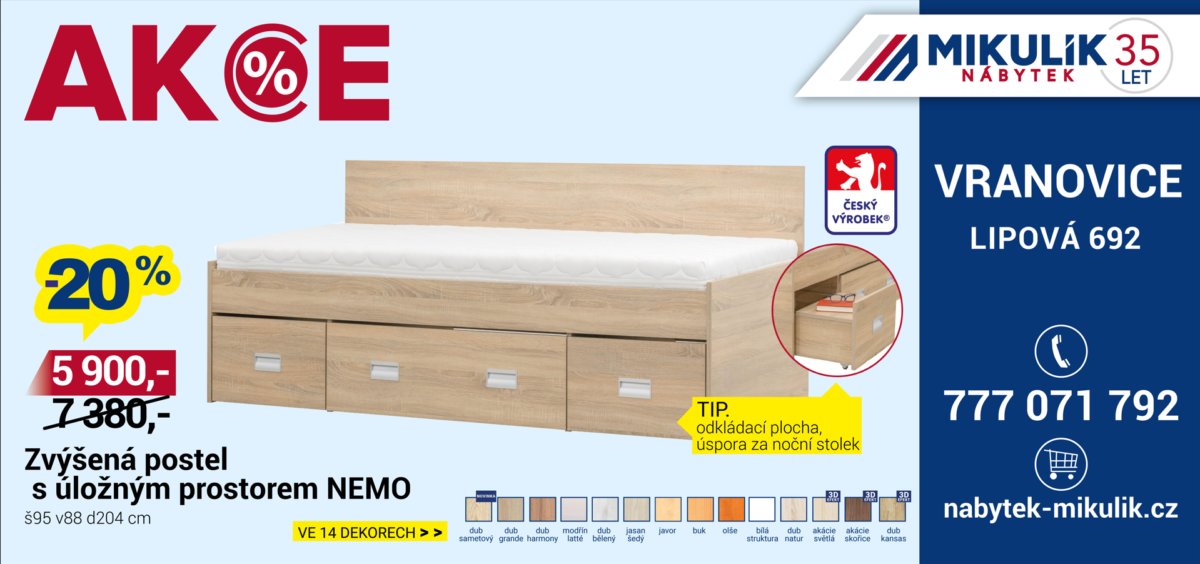 NOVINKA v naší expozici - rozkládací postel EDEN, včetně dvou šuplíků s úložnými prostory. Volba roštu - lamelový nebo bukový laťový. Výběr ze 14 dekorů. Do konce února akce - 10%.