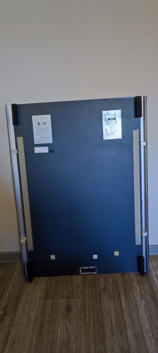 Šedý televizní stolek výška 54cm šířka vepředu 74cm vzadu 50cm uprostřed sklo