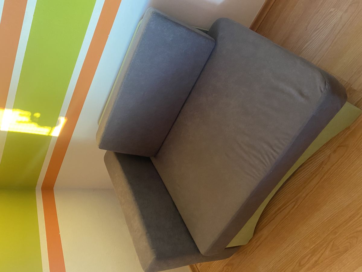 Prodám rozkládací křeslo.Rozměry rozložené: délka 180 cm,šířka 80 cm,nerozložené: délka 97 cm,šířka 80 cm. Barva šedo-zelená. Opěrka na levé straně, s úložným prostorem.Top stav.Cena dohodou.