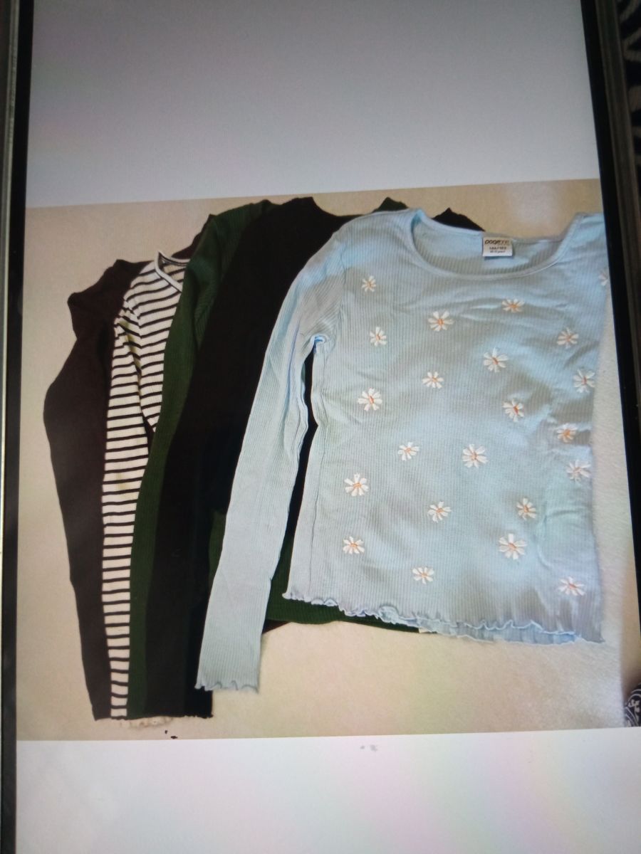 PRODÁM 5X TRIČKO DLOUHÝ RUKÁV, CENA ZA 5 KS 150 KČ. 14 X TRIKO KRÁTKÝ RUKÁV, CENA ZA 14 KS 280 KČ. 1X SVĚTLE MODRÉ RIFLE 50 KČ. 1X ŠEDÉ RIFLE 50 KČ. 1X SVĚTLE HNĚDÁ MIKINA 30 KČ