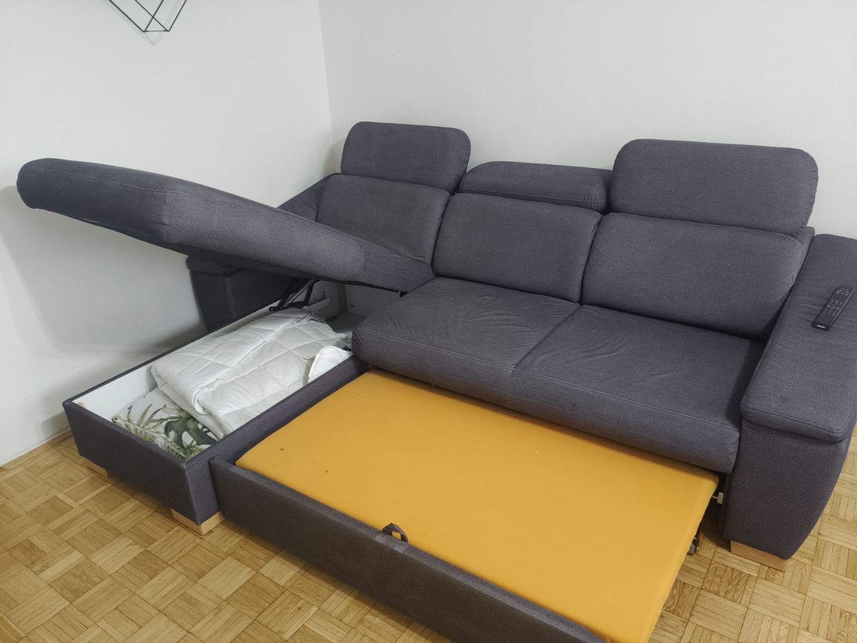 Prodám sedačku, rozkládací s úložným prostorem. Používaná cca 2 roky. 8000,- Kč.