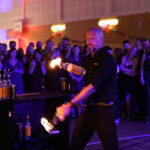 Po asi jedné delší taneční rundě došlo na další vystoupení. Opět ze Zlína přijel v Janové již známý a stále velmi oblíbený Jakub Orel z Barmani Zlín. Jako skvělý barman nepotřebuje mnoho rukou, protože všechny láhve poletují ve vzduchu. Obecenstvo, tentokrát především ženy, aby se to hezky vyvážilo s předchozí nabídkou, se postavilo do půlkruhu kolem minibaru a začalo výskat, ještě než Kuba promluvil. A pak již moc nemluvil, jen předváděl barmanské umění. Několik šťastných žen se stalo majitelkami v přímém přenosu vyrobených likérů, o které se samozřejmě podělily s dalšími přihlížejícími. Vrcholem programu bylo ohnivé zakončení celé show. Ještě, že má sportovní hala vysoký strop.