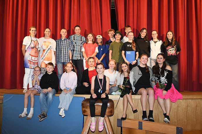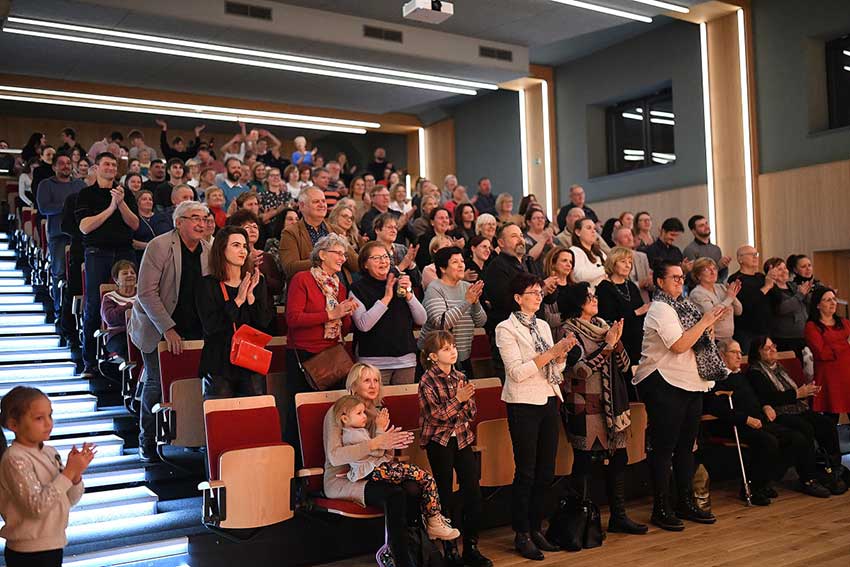 Téměř zcela zaplněné hlediště poděkovalo hercům tím nejkrásnějším způsobem, jaký se herci může dostat – ovacemi vestoje, jak se správně česky říká standing ovations. Do toho uznalý pískot a výkřiky wow a bravo. Ještě, že byl v sále lékař, poněvadž hrdým rodičům musel tlak z toho aplausu pro jejich děti vyletět až do nebeských výšin. A z mladých herců, jen co mohli odhodit masky, tryskala při děkovačkách radost a veselí takovým proudem, že naplnila sál neuchopitelným, a přece tak silně vnímaným kouzlem soudržnosti. V sále nikdo nemusel kreslit velké srdce, přesto je každý cítil v sobě. Takovou atmosféru dokázali vytvořit Karlovští titáni, jejich dospělí kolegové a vzácné publikum. Dlouhotrvající potlesk nadšených diváků, který si vyžádal opakované děkovačky, vyvrcholil gratulacemi, pusinkami a objímáním blízkých, kamarádů a blahopřání sousedů, kteří by dodnes neřekli, co sa v tých harantoch vyváďajúcích gdejaké paskudy všecko schovává. Kdo by chtěl vidět vystoupení znovu nebo je doporučit známým, tak jedině, že by se vloudili v březnu na Hovězí na vystoupení pro školy na přehlídce amatérských souborů Divadelní jaro. Anebo, ještě je tady další možnost, pozvat si divadelní společnost Karlovští titáni s jejich hrou Jak (ne)zničit školu do své obce. Báječný zážitek pro děti i dospělé. Určitě to bude stát za to!