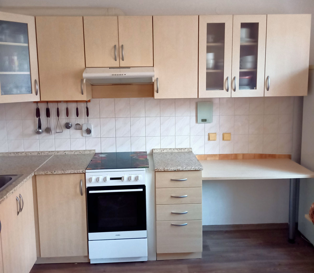 Nabízím k prodeji starší rohovou kuchyňskou linku se sporákem, digestoří, nerezovým dřezem, bez myčky a pračky. Pracovní desku je nutné vyměnit. Horní skříňky jsou výšky 73 cm, různé šířky viz obrá...