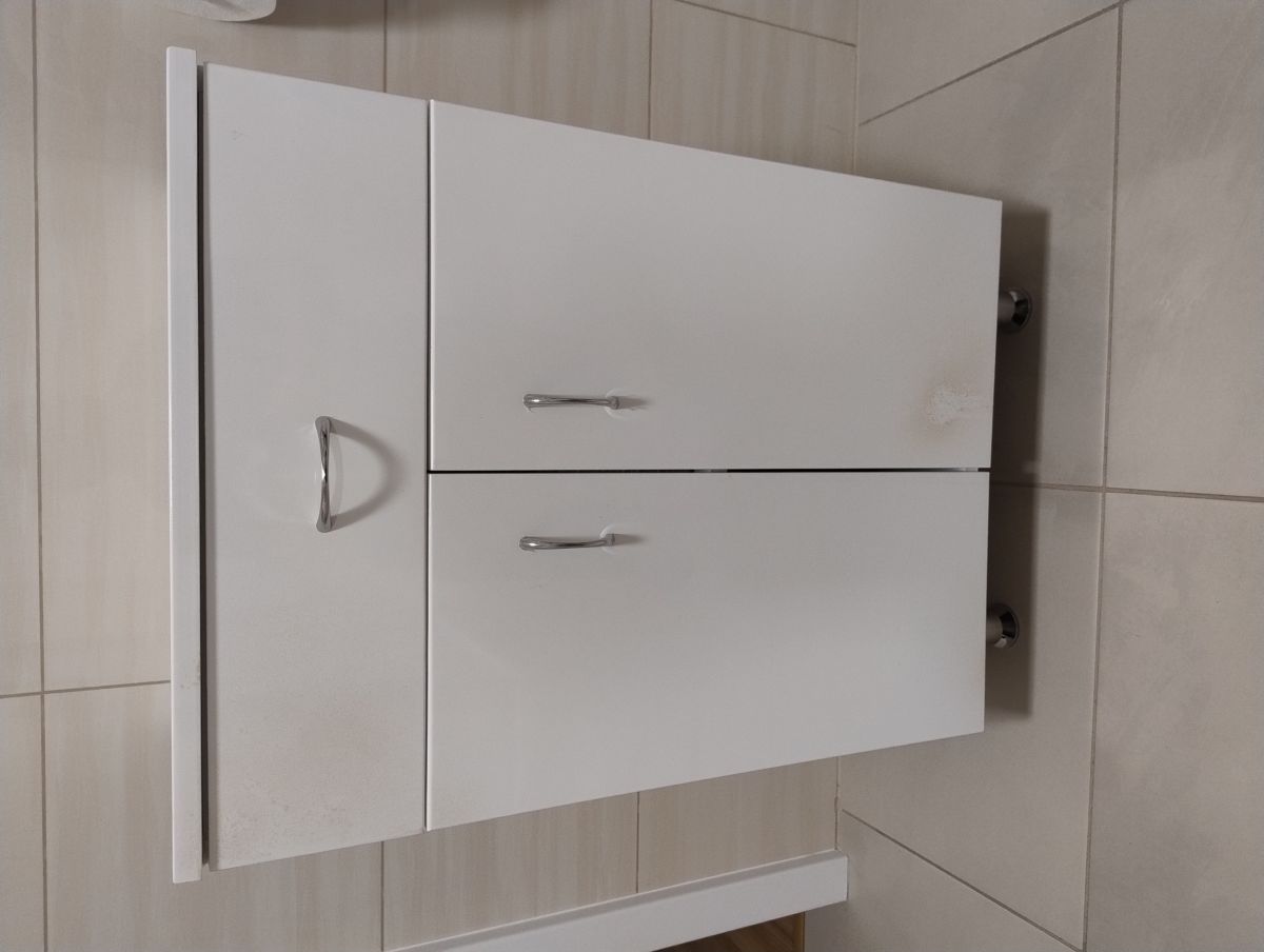 Dobrý den, prodám zánovní bílou skříňku na kovových nohách, do koupelny, výška 78 cm, šířka 50cm, hloubka 34 cm stáří 30 měsíců, původní cena 3200,- Kč k prodeji 1200,-Kč