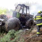 Lesní traktor zachvátily plameny. Ruční hasicí přístroj nestačil