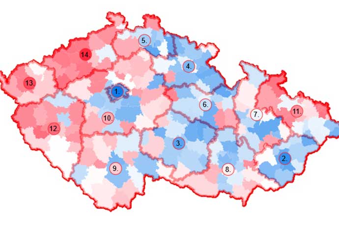 Jak dopadly ORP ze Zlínského kraje (umístění z celkem 206 sledovaných ORP v České republice):