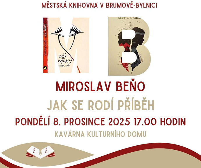 Na besedě, kterou v pondělí 8. prosince 2025 v 17.00 hodin v kavárně kulturního domu pořádá Městská knihovna v Brumově-Bylnici, nám prozradí, jak se jeho romány rodily, kde začíná příběh a kde končí skutečnost a jestli se v budoucnu můžeme těšit na další díla. Večer zakončí autogramiáda s možností zakoupení autorových knih.