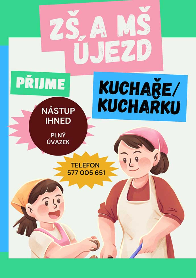 Případní zájemci se mohou hlásit na telefonních číslech 577 005 651, 605 054 279 či na email reditel@zsujezd.cz.
