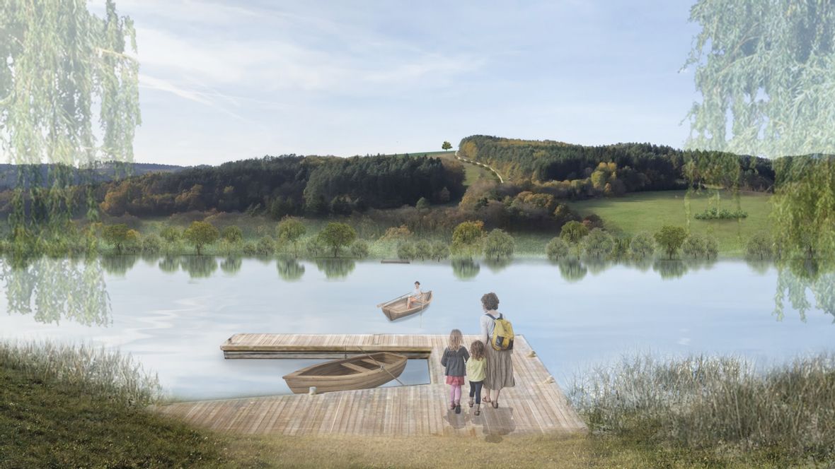 Pobřežní molo s loďkami jako vhodná forma rekreace. Vizualizace: Veronika Chalupová