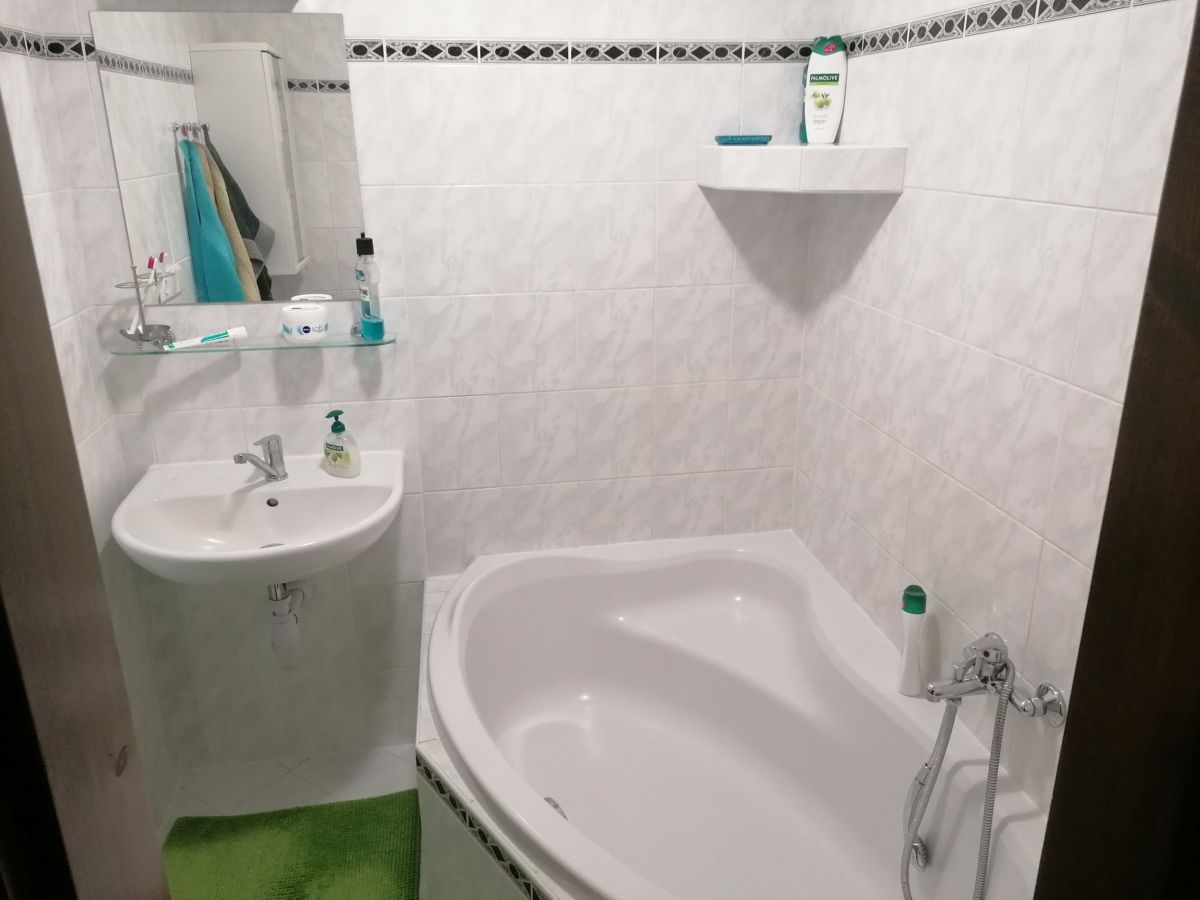 Samotný byt působí příjemně a vzdušně. Byt je v udržovaném stavu, s rekonstruovaným zděným jádrem (koupelna a samostatné WC). Obytné místnosti podlaha PVC, chodba, soc. zařízení a kuchyně keramická dlažba. Vytápění centrální dálkové, vaření plyn, elektřina.