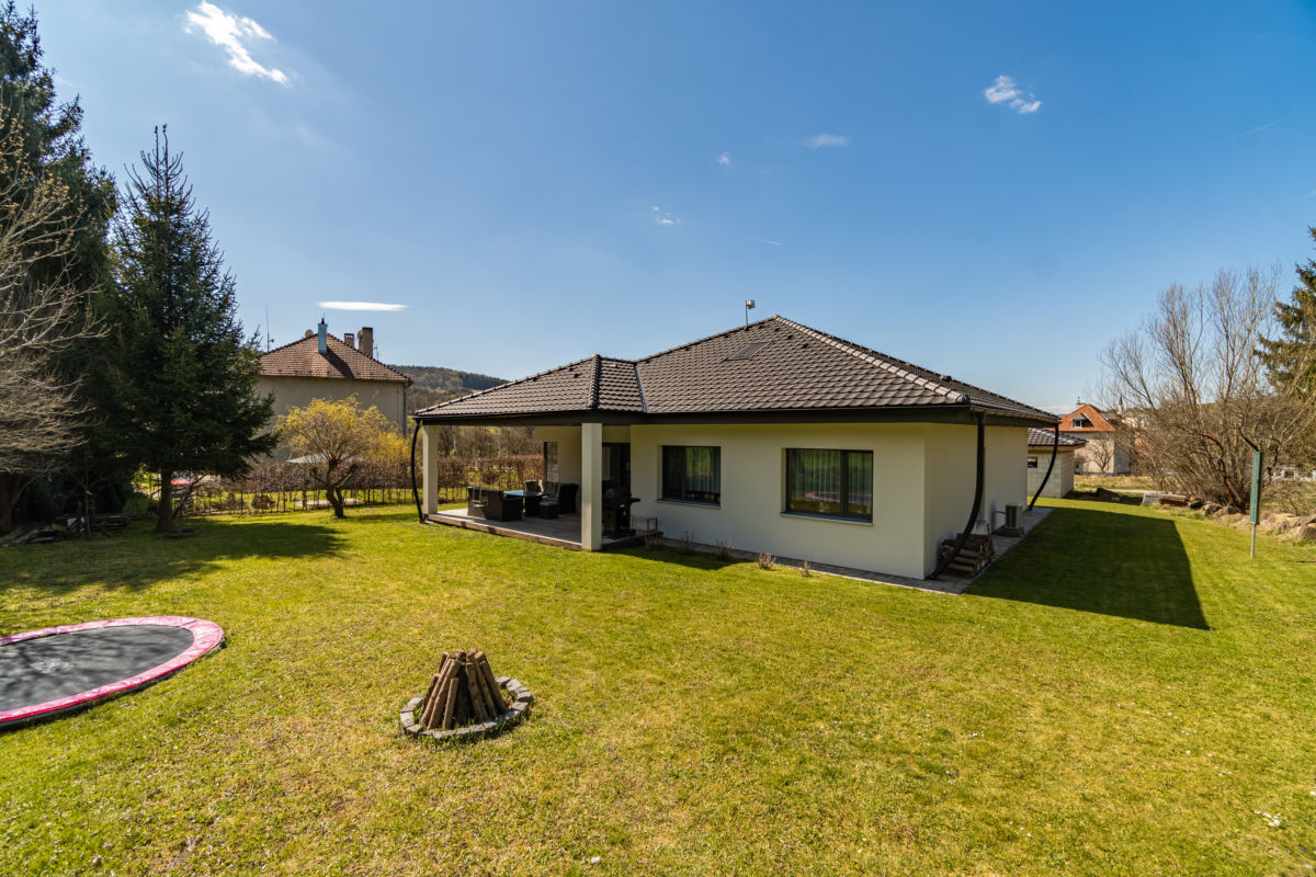 Exteriér domu láká na terasu ideální pro letní večery a před domem vás čeká garáž připravená k dokončení dle vašich přání. Velkorysý pozemek o rozloze více než 1 800 m² nabízí neomezené možnosti – ať už sníte o zahradě, hřišti, skleníku nebo vířivce.