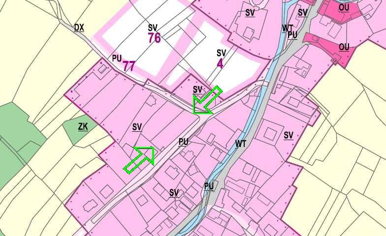 Podle územního plánu se pozemky nachází v zastavěném území obce, ve III. zóně CHKO Bílé Karpaty. Pozemky jsou zatříděny do ploch SV – plochy smíšené obytné venkovské. Pozemky lze využít pro bydlení včetně hospodářského zázemí, které plní doplňkovou funkci.