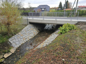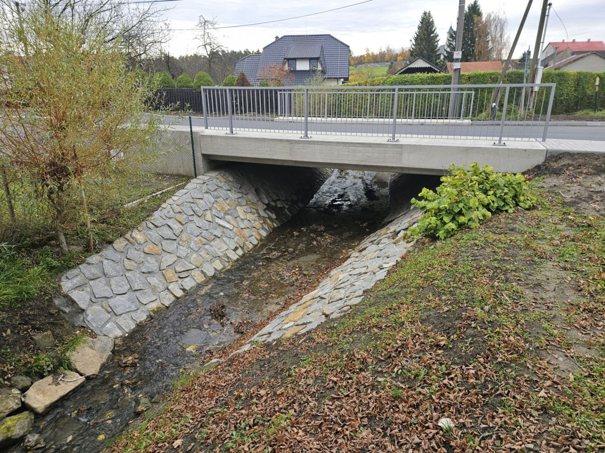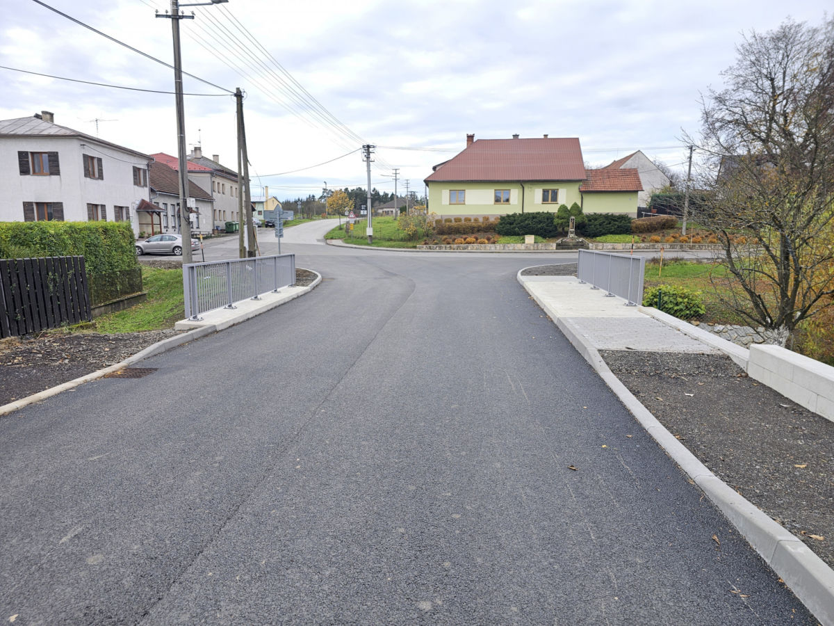 Současně došlo k úpravě silnice v délce 22 metrů. V dotčeném úseku byly zhotoveny nové živičné povrchy. V úsecích, které bylo nutno výškově upravit pro navázání nového mostu, byly doplněny i konstrukční vrstvy. Bylo provedeno opevnění břehů koryta potoka pod mostem a v těsné blízkosti mostu.