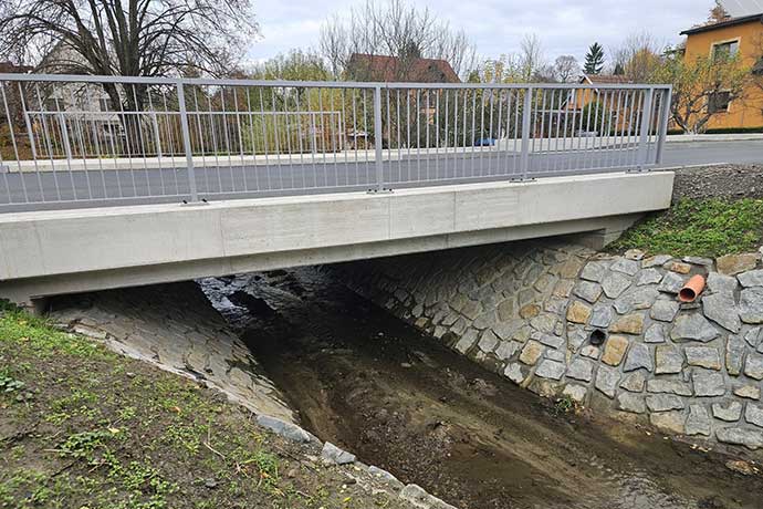 Nový most na krajské silnici III/4943 (ev. č. 4943-1) nahradil původní propustek, který byl dlouhodobě ve špatném stavu. Konstrukce mostu je tvořena železobetonovou deskou o tloušťce 40 centimetrů, podepřenou hlubinnými základy na železobetonových pilotách o průměru 600 milimetrů a délce šesti metrů.