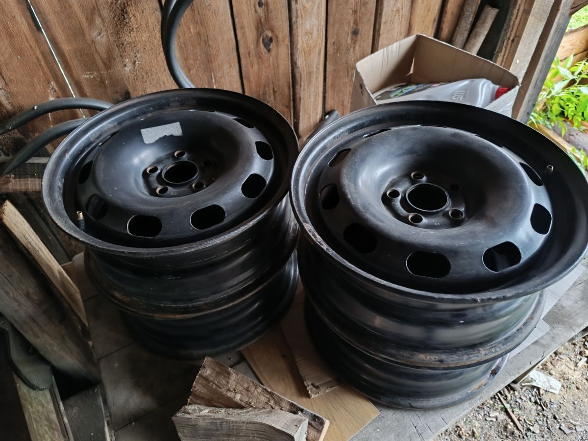 Prodám 4 plechové disky 15" ET38, díry 5x100. Vhodné na Škoda Octavia I nebo VW Golf 4. Odvoz vlastní.