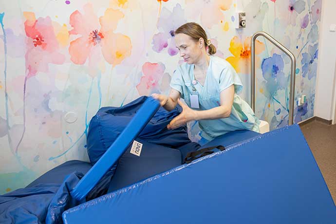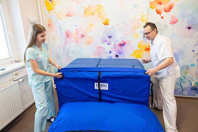 Porodní gauč podporuje přirozený průběh porodu, je variabilní, umožňuje snadnou a rychlou změnu tvaru, vede k volbě různých poloh: předklon, záklon, bok, houpání. Má intuitivní použití pro ženy i personál a podporuje přirozené zapojení partnera či doprovodu. „Porodní gauč máme díky Nadačnímu fondu Propolis33. Oslovili jsme je s žádostí a jim se velmi líbil náš přístup k rodičkám i aktivity, které dlouhodobě rozvíjíme, a tak nás zařadili mezi porodnice, pro něž gauč zajistí,“ uvedl zástupce primáře gynekologicko-porodnického oddělení MUDr. Martin Janáč.