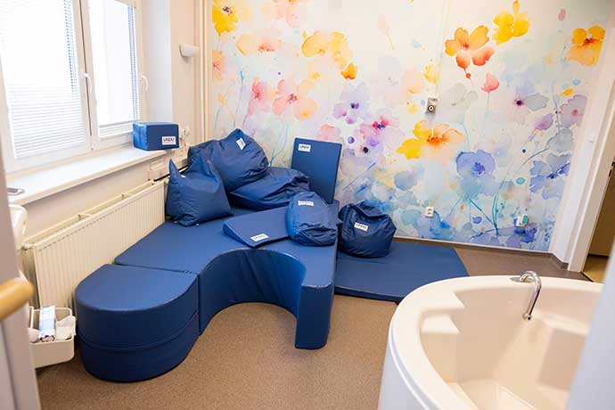 Největší, nově zrekonstruovaný pokoj na porodních sálech ve Vsetínské nemocnici, kam byla nedávno instalována komfortní porodní vana, se pyšní dalšími novinkami. Nejen novou velkoplošnou tapetou s květinovým motivem, ale především porodním gaučem, který Vsetínská nemocnice získala díky Nadačnímu fondu Propolis33.