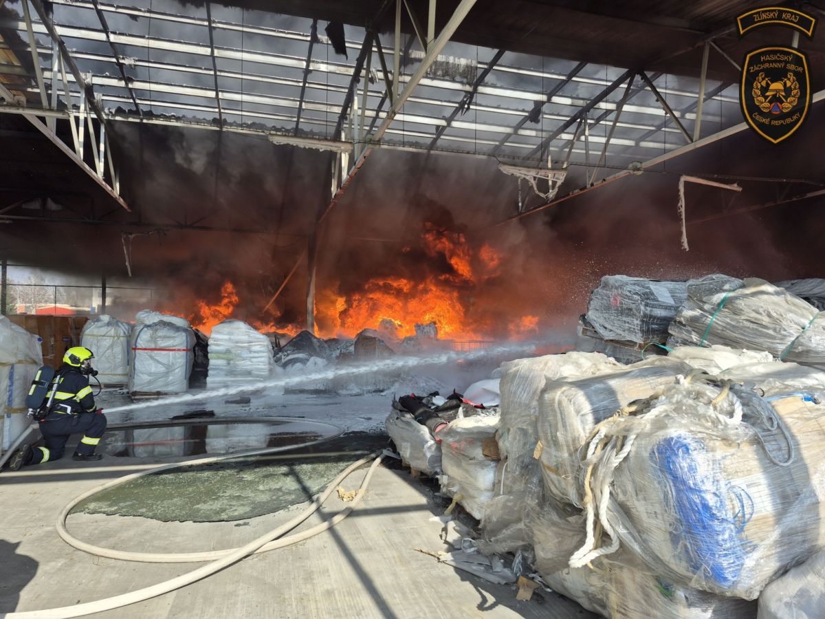Požár v Otrokovicích: plameny zasáhly sklad plastů