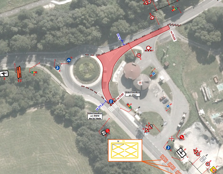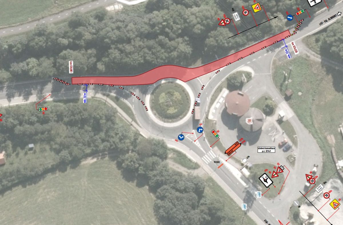 Provoz kruhového objezdu bude veden kyvadlově na semafory. Důvodem omezení je reklamační oprava povrchu vozovky, kterou uplatňuje Ředitelství silnic a dálnic ČR po zhotoviteli této stavby z roku 2021.