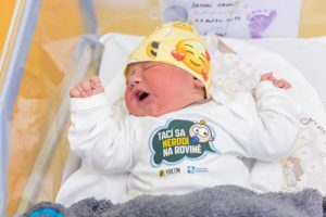 Tací se nerodí na rovině! Samuela, první dítě narozené v roce 2024 ve vsetínské porodnici, přišel přivítat ředitel nemocnice Ing. Martin Pavlica. Předal plenkový dort a zahájil také celoroční spolupráci s VHK ROBE Vsetín, nazvanou v duchu hokejové hymny (Tací se nerodí na rovině).