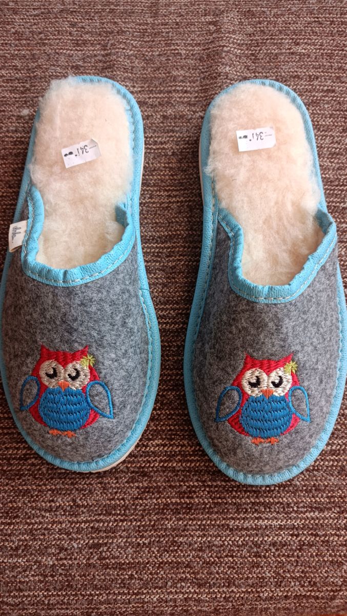 Prodám nové nenošené dětské filcové papučky s ovčí vlnou,velmi teplé.Koupili sme špatnou velikost.Vyrobce Ovečkárna.cz.Delka stélky 21 cm,vel.34.