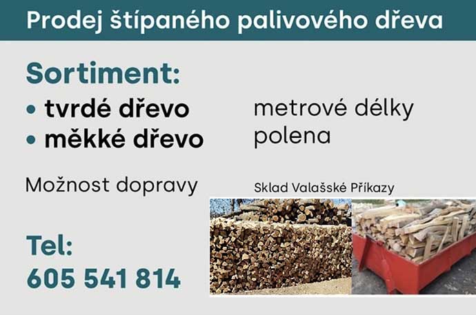 Prodej štípaného palivového dřeva palivové dřevo - tvrdé, měkké v metrových délkách, popř. polena. Tvrdé -bukové - 1 700 Kč/1prm, měkké - 1 200 Kč/1prm. Rovnané polena - cena dle velikosti.