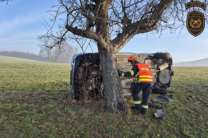 „Po příjezdu na místo velitel zásahu potvrdil nehodu jednoho auta, které sjelo ze silnice a skončilo na boku na okraji pole,“ uvedla tisková mluvčí hasičů Lucie Javoříková. Podle jejích slov řidička z havárie vyvázla bez zranění.