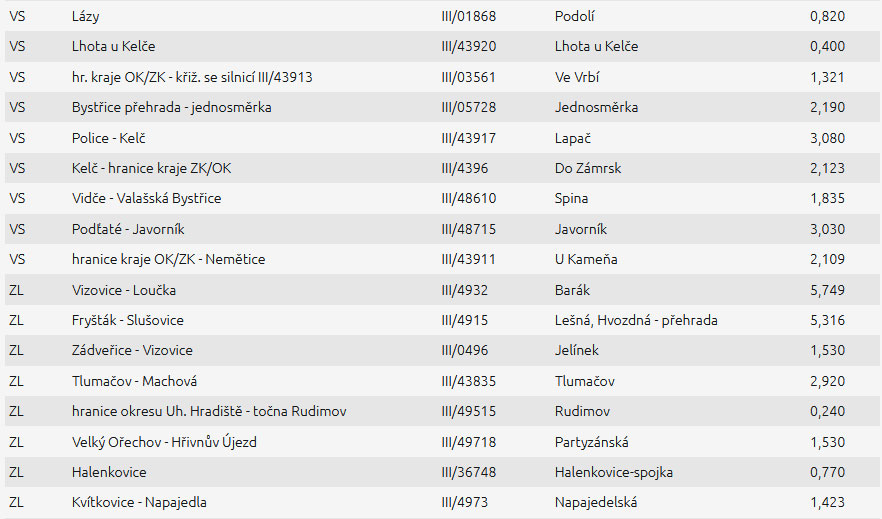 Silnice vsetínského a zlínského okresu, které jsou bez údržby. Pro zvětšení klikni na obrázek