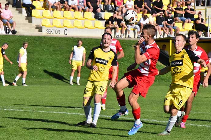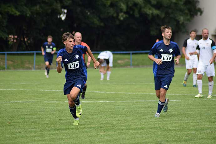 Povedené utkání sehráli v nedělním dopoledni slavičínští fotbalisté proti Lanžhotu, který byl do skupiny E přeřazen před touto sezonou společně s Břeclaví z divizní D skupiny. Hosté z Podluží měli v nohách úterní duel MOL cupu proti ligové Viktorii Plzeň, které podlehli v domácím prostředí 1:6. Slavičané již 14 dnů navíc nehráli, poněvadž Kvasice se odhlásily ze soutěže a duel ve Všechovicích byl odložen. Trenér domácích Pavel Tomeček musel před utkáním improvizovat v sestavě, neboť několik hráčů se stále potýká se zraněním. Nakonec se ale trefil do sestavy náramně a Slavičané si po velmi bojovném výkonu připsali tři body. Vše odstarovala první branka, kterou vstřelil pěknou hlavičkou po patnácti minutách hry domácí kanonýr Jakub Žůrek. Ještě předtím však slavičínští fotbalisté nastřelili brankovou konstrukci. Hosté byli zaskočeni vývojem utkání a jen pomaličku se dostávali do zápasu. Vyrovnat se jim nakonec podařilo po půlhodině z nevinné akce, kterou s přehledem zakončil agilní slovenský legionář Burac. Do poločasu se už skore nezměnilo a do kabin se tak odcházelo za stavu 1:1. Druhou půli začali domácí hráči velmi aktivně a vyústěním byla penalta v 50. minutě, kterou pak s přehledem proměnil Dominik Hnilo. Domácí pak hráli v zadních řadách velmi pozorně a hosty na dostřel brankáře Pjajka příliš nepouštěli. Domácí mohli navýšit své vedení, ale chyběla tomu lepší finální přihrávka. Navíc hostě přišli čtvrt hodiny před koncem o vyloučeného Ravase po druhé žluté kartě. Definitivní třetí pojistku pak přidal v samotném závěru krásnou střelou z trestného kopu kapitán domácího celku Ondra Školník. Vítězství Slavičanů nad vyspělým soupeřem je nakonec zasloužené, domácí ukázali větší vůli po výhře než jejich soupeř a vytvořili si i více brankových příležitostí. Další mistrovské utkání odehrají Slavičané v sobotu 27. září od 15.30 hodin v nedalekém Holešově. FC TVD Slavičín - Sokol Lanžhot 3:1 (1:1) Branky: Žůrek, Hnilo (pen.) a Školník VIDEO z utkání si můžete prohlédnout zde. -kos-
