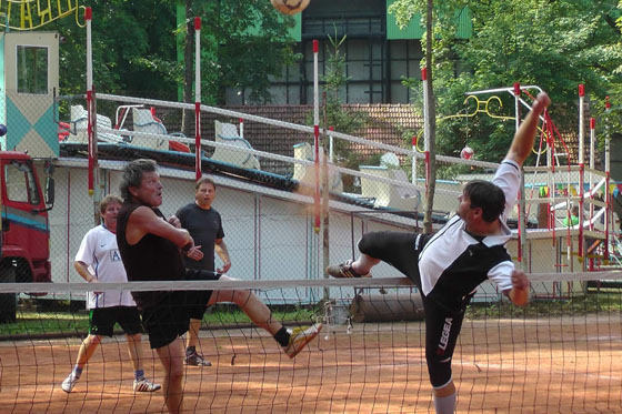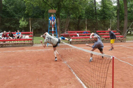 V zámeckém parku ve Slavičíně proběhl v neděli na antukových kurtech již XVII. ročník Jerevan cupu v nohejbalu trojic. V úmorném vedru zde startovalo 12 týmů, které byly rozděleny do dvou skupin po šesti mužstvech. Do čtvrtfinále postupovaly první čtyři celky z každé skupiny. Favoritem klání byl obhájce prvenství z Brumova, který ale v úvodním duelu zaváhal s místním celkem Sloniska (bývalá HOPA). Velmi dobře si vedli v základní skupině štítenští Kameni se smečařem Zbyňkem Raškou, ve skupině A dominovali hráči SKP, následováni Holotou z Bohuslavic, nováčkem Čupakabrou a Absťáky.