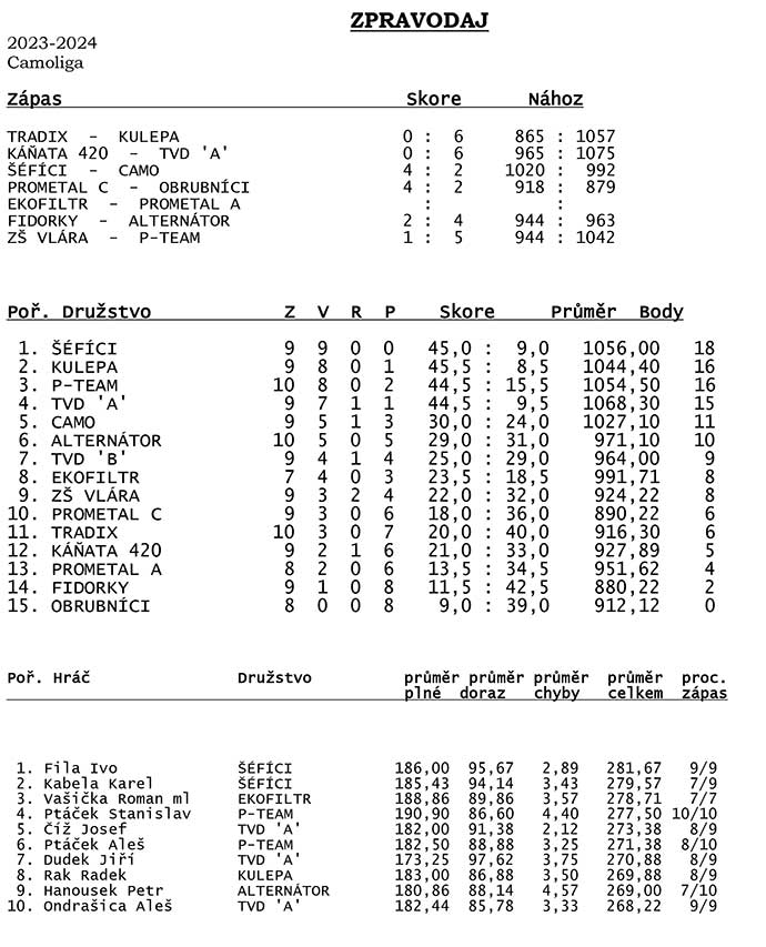 Slavičínská kuželkářská liga pokračuje i po novém roce a na špici tabulky se usadila hned čtveřice favoritů - Šéfíci, Kulepa, Ptáček team a TVD. Některé týmy mají o zápas méně a tak bude zajímavé v závěrečných kolech sledovat, kdo si nakonec vybojuje vítězství v tomto ročníku.
