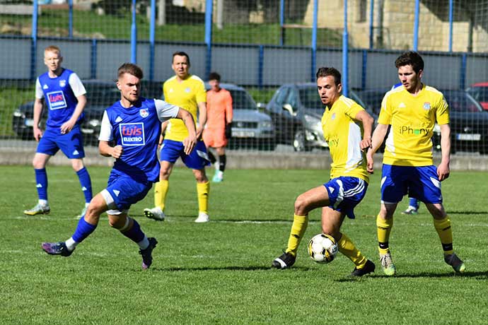 Naše borce opět čekal těžký zápas. Minule to byl těžký terén, malé hřiště, vynikající a tvrdě hrající soupeř. Tentokrát nás opět čekal těžký a kvalitní soupeř, hráli jsme sice na našem krásném hřišti, ale dalším našim soupeřem byla nervozita z toho, že musíme udělat ještě ten poslední krok. Od začátku bylo vidět, že to naši ogaři měli v hlavách. Hra byla na začátku kostrbatá, nervózní, měli jsme sice ze hry víc, ale naše akce byly uspěchané. Přesto jsme si vytvořili dvě tutovky po dvou rozích. Jenže Jonáš v jasné situaci hlavičkoval nad branku a Ondru vychytal výborným zákrokem gólman hostí. Hosté měli jeden samostatný nájezd Bouchalíka, ale toho skvěle vychytal Lukáš. O vítězi dnešního zápasu rozhodly standartky. My jsme z nich vstřelili tři ze čtyř branek. A hlavní hvězdou zápasu se stal Honza Vaněk, který zkompletoval čistý hattrick za přesný poločas. Ve 23. minutě byl faulován Matěj Zádrapa. Exekuce trestňáku se z pravé strany ujal náš jediný levák Filip Kulíšek, který zakroutil míč na zadní tyč, kde si na hlavu naskočil Honza a v pohodě zavěsil, 1:0. Soupeř vyrovnal minutu před poločasem z ojedinělé akce, kdy skvělou přihrávku mezi stopery dostal Bouchalík, šel sám na Lukáše a s přehledem proměnil, 1:1. My jsme po prvním gólu měli další čtyři šance, ale nepovedlo se nám je proměnit.