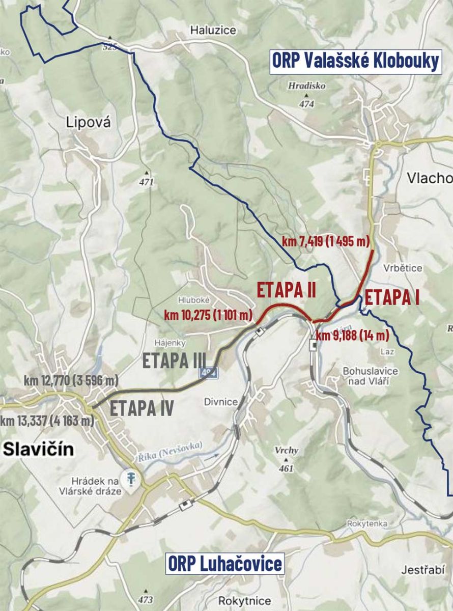 Na silnici II/494 v úseku Slavičín – Vrbětice pokračuje rozsáhlá rekonstrukce, která potrvá do 31. října 2026. Práce začaly kácením stromů podél komunikace a budou probíhat po jednotlivých etapách, přičemž každá etapa bude spojena s úplnou uzavírkou příslušného úseku. Termíny zahájení jednotlivých etap nejsou předem pevně stanoveny a budou se odvíjet od postupu stavebních prací. Řidičům se doporučuje průběžně sledovat aktuální dopravní značení, podle kterého budou vyznačeny objízdné trasy a omezení v místě stavby.