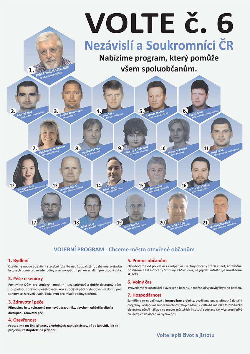 Otevřeme novou atraktivní stavební lokalitu nad koupalištěm, zahájíme výstavbu bytových domů pro mladé rodiny a velkokapacitní parkovací dům pro osobní auta. Postavíme Dům pro seniory – moderní, bezbariérový a dobře dostupný. Další body programu najdete v letáku níže.