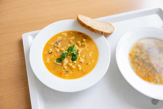 Luštěniny jsou pravidelnou součástí jídelníčku ve Vsetínské nemocnici, ke Světovému dni luštěnin je však kuchyně zařadila v netradičních kombinacích. „Strávníci mohli ochutnat například smažené kuřecí krokety s uzeným sýrem a červenou čočkou, nebo vegetariánské thajské cizrnové kari s květákem a kokosovým mlékem,“ přibližuje vedoucí oddělení stravování Eva Maliňáková. V nabídce nechyběla ani gratinovaná řecká musaka s vepřovým masem a červenými fazolemi. Myslelo se i na ty, kteří luštěninám příliš nefandí. V úterý 10. února 2026 kuchyně připravovala také špenátové špecle s krůtím masem, modrým sýrem a smetanou nebo domácí tvarohové knedlíčky s ovocnou omáčkou. Z polévek si strávníci mohli vybrat například hovězí vývar s játrovými knedlíčky či dietní varianty.