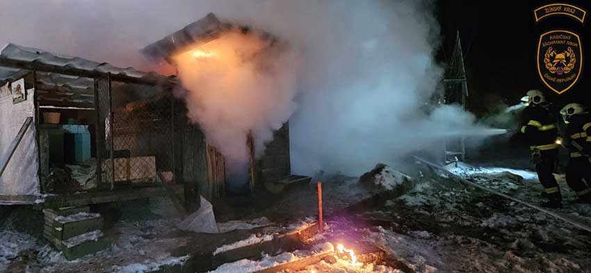 Požár v Hošťálkové. Foto: JSDHO Hošťálková