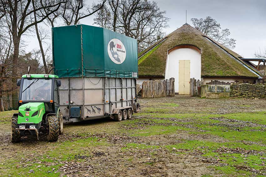 Desetiletá samice žirafy Rothschildovy přicestovala v úterý 9. prosince v odpoledních hodinách. „Speciální transportní přívěs jsme před výběhem žiraf zapojili za náš traktor, který pak s přívěsem přijel až k samotnému pavilonu. Samozřejmě to vzbudilo zájem i u našich žiraf, takřka nehnutě vše z pavilonu pozorovaly. Ema vystoupila z transportního přívěsu záhy po jeho otevření a velmi klidně prošla až do pavilonu. Ihned se začala očichávat s ostatními žirafami,“ popsala příjezd nové žirafy chovatelka Kateřina Žatecká. První den byla nová žirafa oddělena od samice Kamily a samce Zula, následující den chovatelé skupinu spojili. „Vše proběhlo velmi poklidně, všechny žirafy tak mohly společně vyjít i do venkovního výběhu. K naší radosti samec Zulu od prvních momentů projevoval o Emu velký zájem, vkládáme do nich velké chovatelské naděje. Ema se jeví jako velmi perspektivní samice,“ doplnila Žatecká.